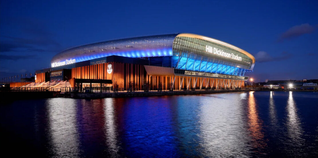 Main image (top) – LIVERPOOL, ENGLAND – OCTOBER 29: A general view taken at dusk of Hill Dickinson Stadium at Bramley Moore Dock on October 29, 2025 in Liverpool, England. (Photo by Tony McArdle/Everton FC)